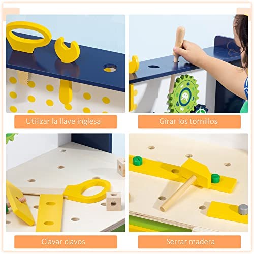 EL MEJOR BANCO DE HERRAMIENTAS: este banco de trabajo de madera para niños todo en uno mantendrá a su hijo entretenido durante horas. Incluye 27 herramientas simuladas, como un martillo, destornilladores, sierras, llaves inglesas y más. El llamativo color de todas las herramientas hará las delicias de los más pequeños de la casa