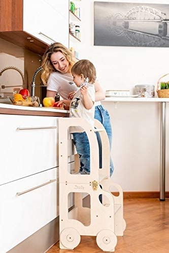 ¿Cómo te ayudará a cocinar? Se transforma en taburete y permite que tu hijo te ayude a preparar la cena, añadiendo verduras, carne, queso, preparando ensaladas, etc… La torre de aprendizaje será como un amigo para tu hijo, convirtiéndose en parte de la familia, que siempre estará estar dispuesto a ayudar a los más pequeños a llegar a lugares que para ellos son inalcanzables, logrando alcanzar nuevas metas.